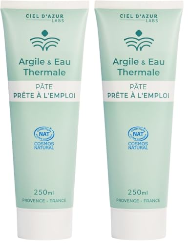 Ciel d'Azur Labs - Pâte d'Argile Verte à l'Eau Thermale - Prête à l'Emploi, Idéale pour Cataplasme - Riche en Sels Minéraux et Oligo-Éléments - Certifié Naturel Cosmos Natural - Tube 250ml (Lot de 2)
