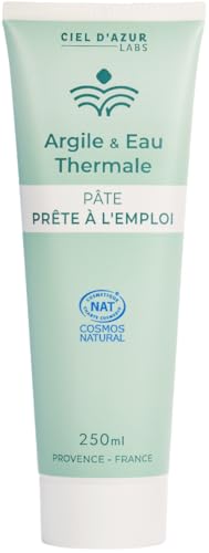 Ciel d'Azur Labs - Pâte d'Argile Verte à l'Eau Thermale - Prête à l'Emploi, Idéale pour Cataplasme - Riche en Sels Minéraux et Oligo-Éléments - Certifié Naturel Cosmos Natural - Tube 250ml