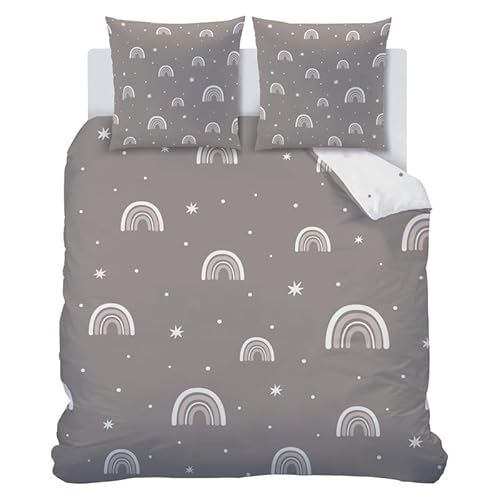 PNHCL Housse de Couette 100x140 Arc-en-Ciel Parure de Lit 1 Personne, Étoile Housse Couette avec 1 Taie d'oreiller pour Enfant Fille Garcon Deco Chambre, Modèle de Dessin Animé Blanc