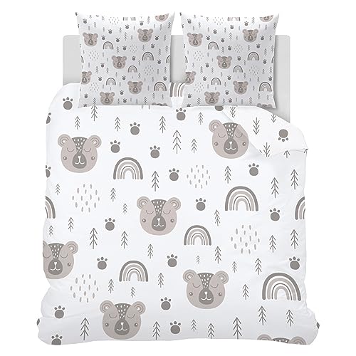 Syhiego Parure de Lit 140x200 1 Personne Microfibre Housse de Couette Enfant Réversible 3d Arc-En-Ciel Dessin Animé Ours Motif avec Fermeture Eclair avec 2 Taies D'oreiller 65x65 pour Fille GarçOn Ado