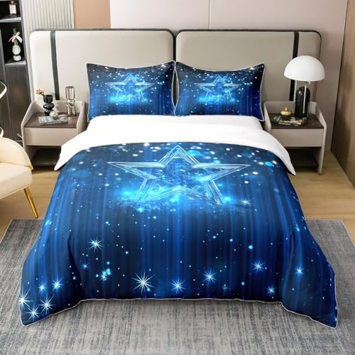 Homewish Housse de Couette 220x240 Enfant avec 2 Taies d'oreiller - Parure de Lit Étoiles pour Garçon Fille - Ensemble de Literie Ciel Dégradé - Couvre Lit Bleu Étoilé Romantique en Coton