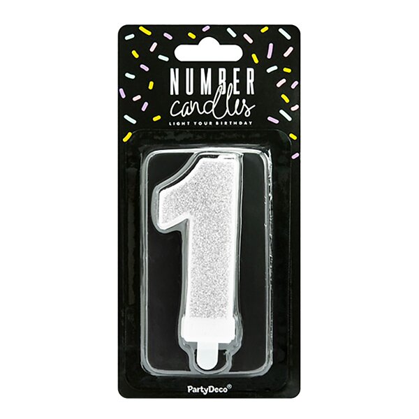 PartyDeco Tårtljus Siffra Silver Glitter Siffra 1