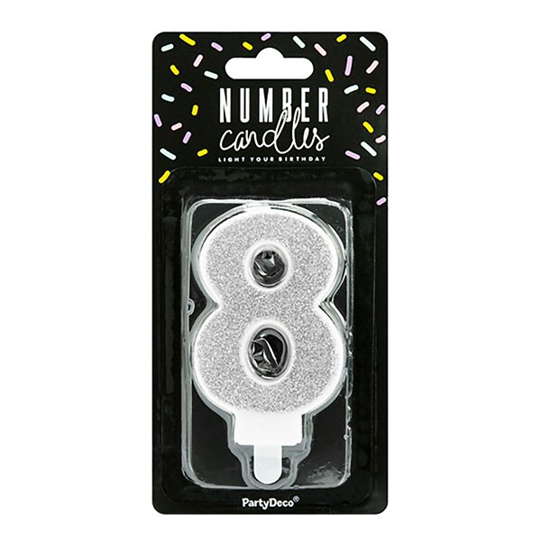 PartyDeco Tårtljus Siffra Silver Glitter Siffra 8