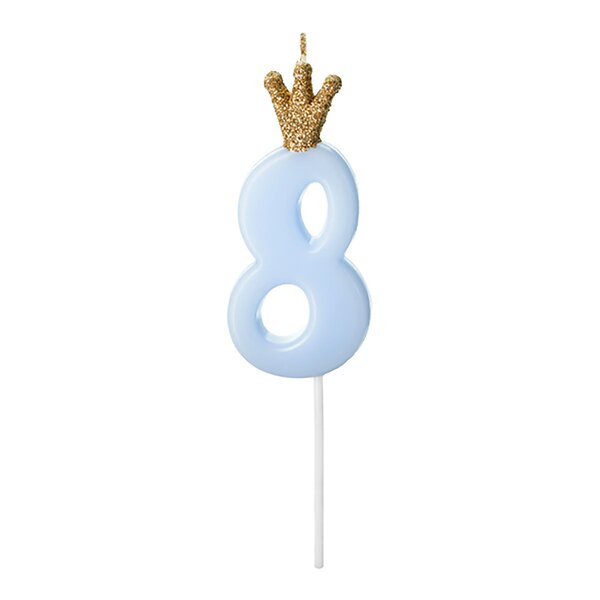 PartyDeco Tårtljus Siffra med Krona Blå 8 år