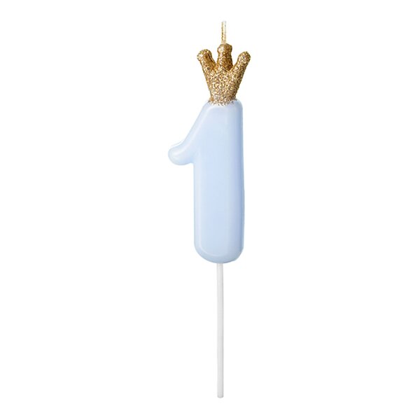 PartyDeco Tårtljus Siffra med Krona Blå 1 år