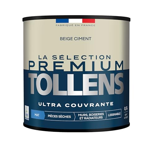 Tollens - Peinture Couleur - Murs, Boiseries & Radiateurs - La Sélection Premium - Pièces sèches - Ultra couvrante - Résistante - Ultra rapide - Ecolabel - Mat - BEIGE CIMENT - 0L5 = 6m²