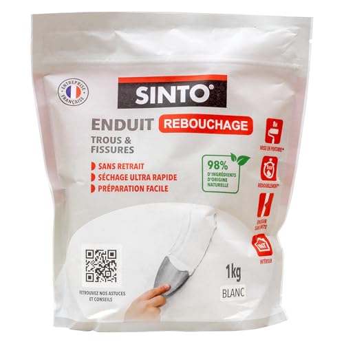 SINTO - Enduit de Rebouchage Poudre - 1kg - Sachet Doypack - Bois, Plâtre, Ciment, Briques - Sans Odeur - Séchage Rapide - Excellente Adhérence - Intérieur Extérieur - Technique Professionnelle