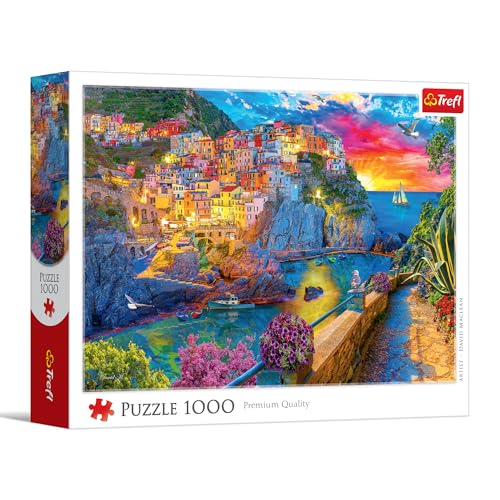 Trefl - Promenade Nocturne dans Les Cinque Terre - 1000 pièces - Puzzle à Monter soi-même, Divertissement créatif, Puzzle Classique pour Adultes et Enfants à partir de 14 Ans
