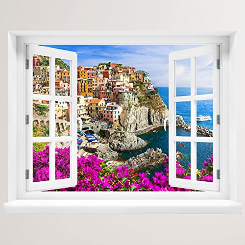 Sticker mural - Fenêtre avec vue sur Cinque Terre 120x94cm - Sticker mural