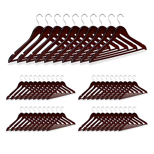 Relaxdays Cintre en bois 50, Cintre manteaux, Pantalons, robes, vêtements, 50 pièces, Crochet rotatif 360°, solide, brun