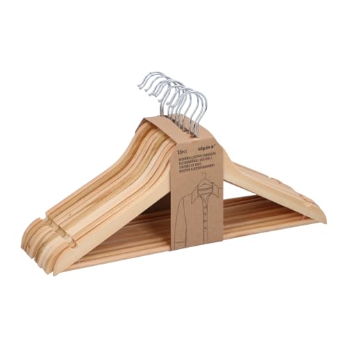 Alpina Cintres Bois Lot 10 Pièces – Cintre pour Épaules Larges - Cintres Antidérapant – Cintre en Bois – Hangers Clothes avec Barre Pantalon - Crochet Pivotant