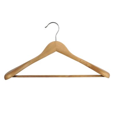 Cintre en bois - THOMAS - Col galbé - 43 cm - Hêtre naturel - Crochet métal nickelé