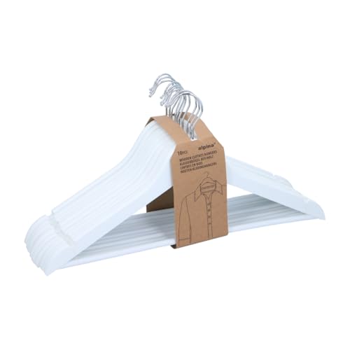 Alpina Cintres Bois Lot 10 Pièces – Cintre pour Épaules Larges - Cintres Antidérapant – Cintre en Bois – Hangers Clothes avec Barre Pantalon - Crochet Pivotant - Blanc