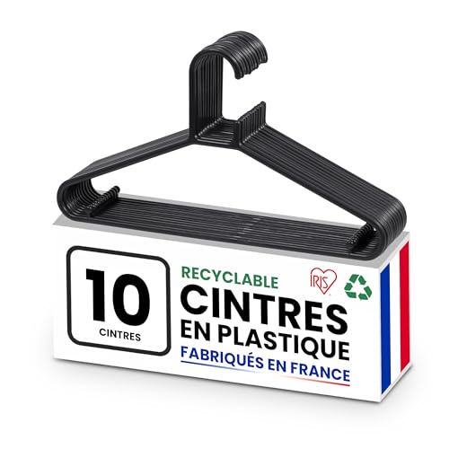 Iris Ohyama, Cintres Plastique, Lot de 10 cintres, Cintre Gain de Place pour vêtements, Noir, sans BPA, Placards, Chemises, Manteaux, Cravates, Robes, Pantalons, Epais, Résistants, CHM-39