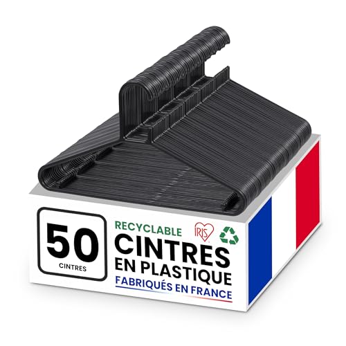 Iris Ohyama, Cintres Plastique, Lot de 50 cintres, Cintre Gain de Place pour vêtements, Noir, sans BPA, Placards, Chemises, Manteaux, Cravates, Robes, Pantalons, Epais, Résistants, CHM-39