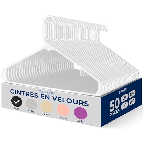 Serenelife Cintres Plastique Blanc, Cintre Gain de Place, Durables et Fins, Parfaits pour Le Linge/Un Usage Quotidien, Peuvent Supporter jusqu'à 2,5 kg pour Manteaux, Costumes, Robes, Lot de 50