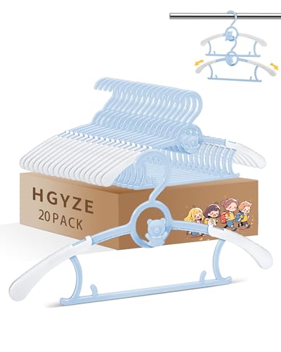Cintre Enfant 20pcs HGYZE Cintre Bebe 29-37cm Réglables Durables Antidérapants, Cintres en Plastique Vêtements avec Crochet d'ours, Empilables Peu encombrant, pour Pantalon et Jupe Bébé, 4 Couleurs