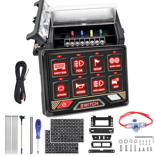 Chelhead Interrupteur de panneau: 12v/24v 8 contrôle Interrupteur à Bascule RGB Universel Système de relais de contrôle avec circuit auxiliaire pour Véhicule tout-terrain Voiture Camion Bateau
