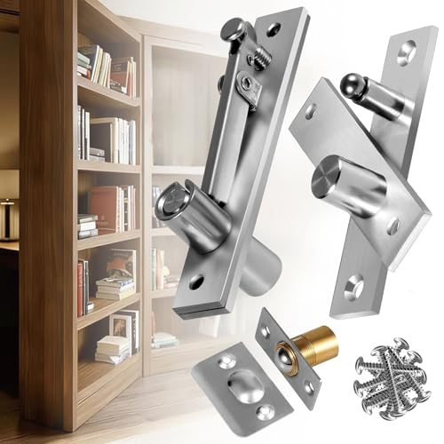 Charnières pivotantes de porte, système de charnière invisible avec loquet à billes pour portes en bois robustes de 90,7 kg maximum et bibliothèque cachée et secrète, bibliothèque Murphy (1)