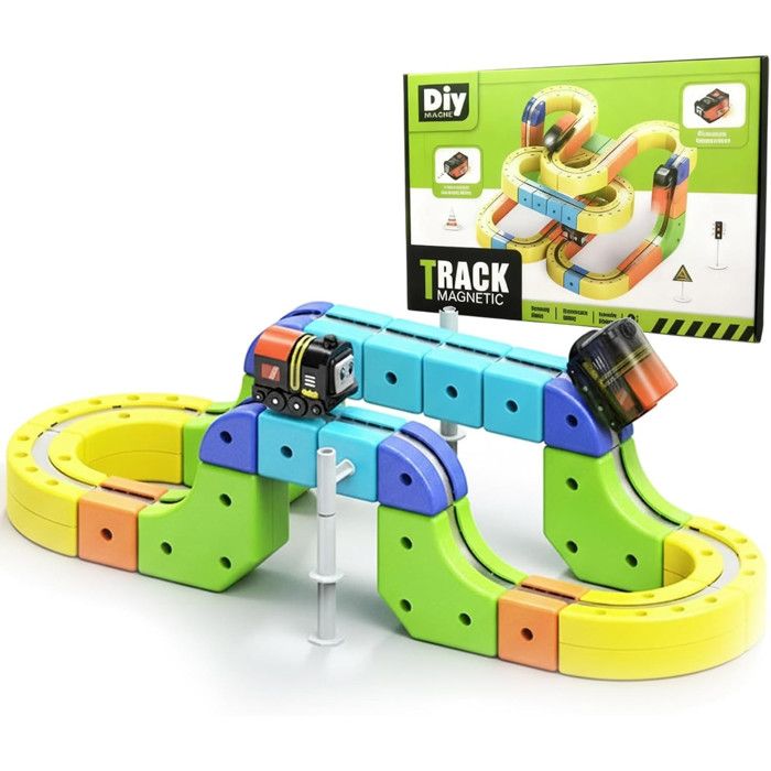 Circuit Voiture Enfant 3 Ans Magnétique 62PCS Piste Anti-Gravité 3D Clips Train Rotatif 360° Construction Éducatif Cadeau