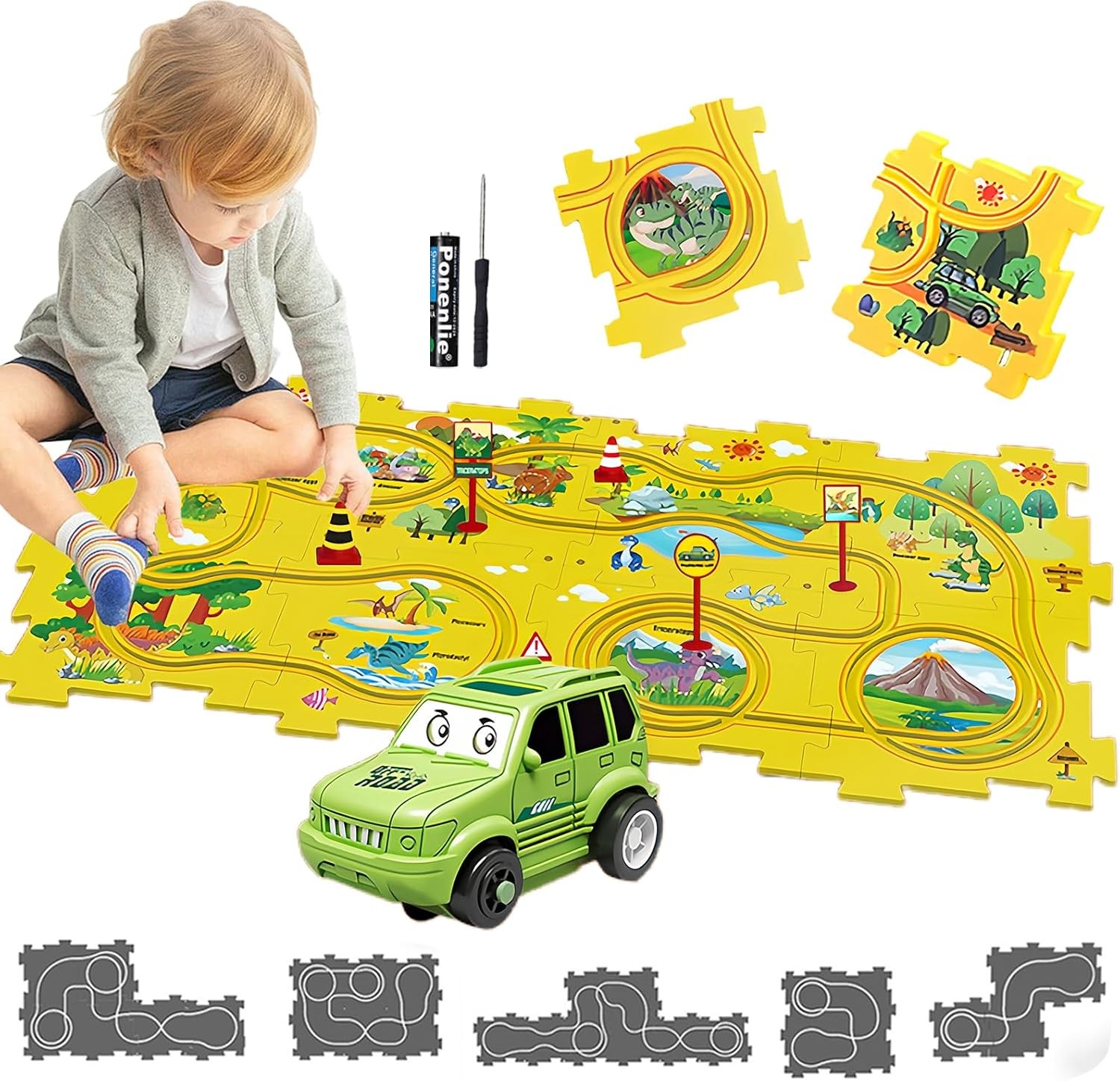 Circuit Voiture Dinosaures THOTCOC - Jouet de construction pour enfant de 3 ans et plus - 269 pièces