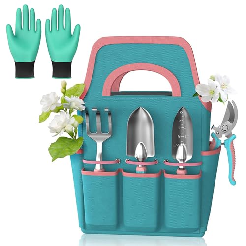 Kit d'outils de jardin | Gants de plantation, pelle, cisaille, râteau, outils de jardin avec sac de transport – Pour jardin, balcon, terrasse, serre, pelouse, intérieur et extérieur