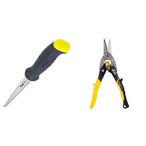 Stanley 0-20-556 Scie à Guichet - Gamme Fatmax - pour Cloisons Sèches, Bois et Plastique & FATMAX Cisaille Aviation Tête Droite Acier Forgé Chromé Double Action de Pivot pour