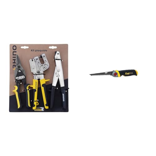 RHINO - Lot de 3 outils, Kit 3 pièces - Cisaille/Grignoteuse/Pince à sertir & STANLEY FATMAX Scie pour Usage Général - Découpe du Plâtre - 8 Dents/Pouce - Denture Triple Biseaux