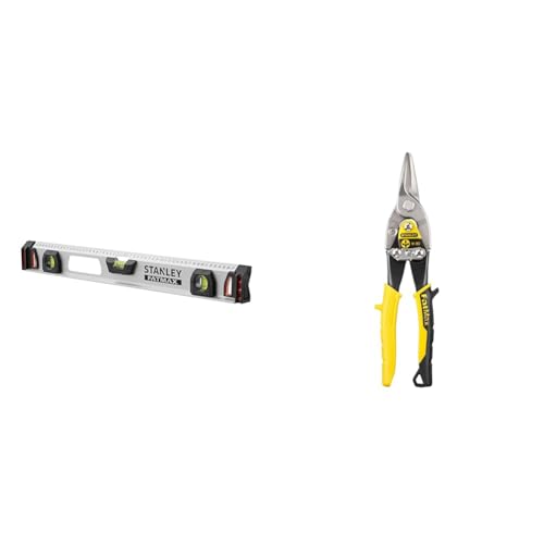 STANLEY FATMAX Niveau Magnétique 60 cm I-Beam - Aluminium Résistant et Léger - Antichocs & Stanley FATMAX Cisaille Aviation Tête Droite Acier Forgé Chromé Double Action de Pivot