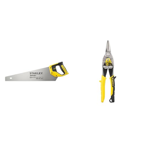 Stanley 2-15-595 Scie Égoïne JetCut Coupe Fine 450 mm Fabriquée en France - 11 dents/Pouce & FATMAX Cisaille Aviation Tête Droite Acier Forgé Chromé Double Action de Pivot