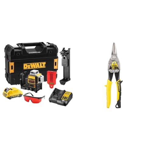 DeWalt - Laser Multilignes 3x360° 12V Li-Ion 2Ah - Niveau Laser Autonivelant 4° sans Fil & Stanley FATMAX Cisaille Aviation Tête Droite Acier Forgé Chromé Double Action de Pivot