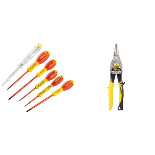 Stanley FatMax 0-65-443 Jeu De 6 Tournevis Isolés 1000V - Gamme FatMax - Fabriqué & FATMAX Cisaille Aviation Tête Droite Acier Forgé Chromé Double Action de Pivot pour Plus de Puissance Poignées