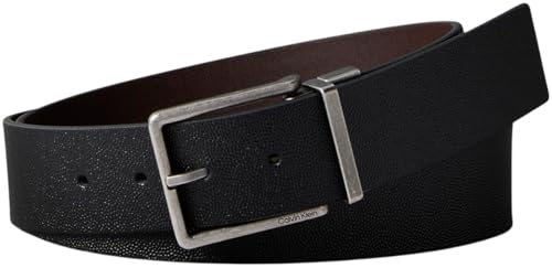 Calvin Klein Ceinture Homme Warmth Buckle 4 cm Boucle Carrée, Noir (Black/Ck Dark Brown/Matte Black), 85 cm