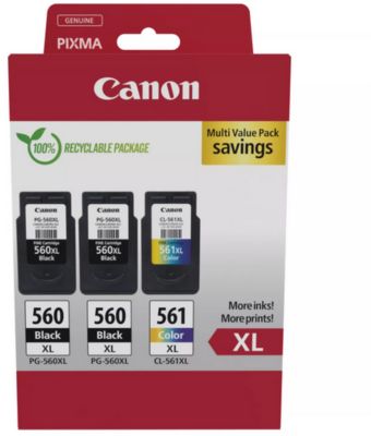 Cartouche d'encre CANON Pack de 3 Originales XL (2x PG-560 Noir + 1x CL-561 Couleur) - 3712C005