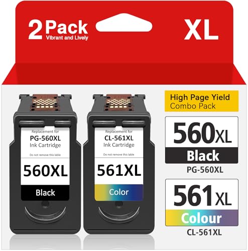 XXINGYULI Cartouche d'encre Compatible 560XL 561XL, Compatible avec TS5350 TS7450 série PG-560 CL-561 XL(BK(2PC))