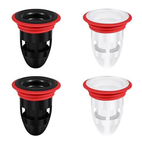 VIDSTW 4 Pièces Clapet Anti Odeur Siphon de Sol, Bonde Douche Siphon de Sol, Attrape Cheveux Douche Anti-Colmatage, Clapet Anti Odeur Douche, pour Salle de Bain, Buanderies (Noir, Blanc)
