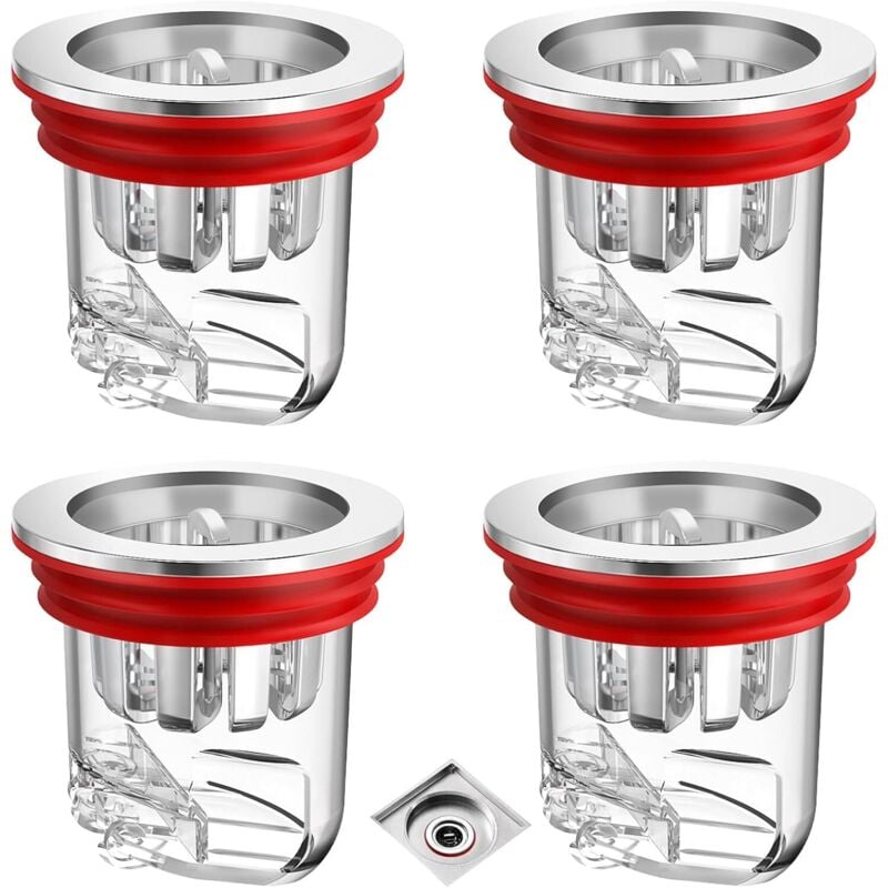 Shining House - 4 Pièces Clapet Anti Odeur, Transparent Anti-Odeur Drain de Sol Douche pour Machine à Laver, Trous de Drainage, Salles de Bains et