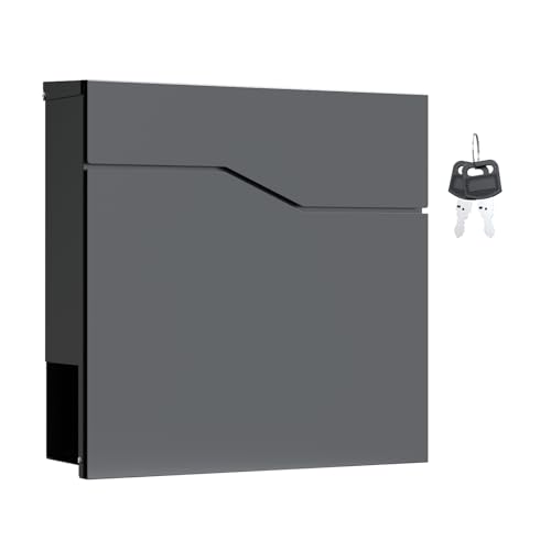 Wiltec Boîte aux Lettres Murale ou sur Pied Design & Porte-journaux V19, Verrouillable, Gris Anthracite, Acier galvanisé, 370 x 102 x 370 mm, Fente et clapet