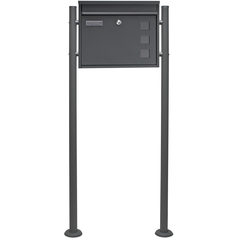 Wiltec Kit 2X Boîte aux Lettres V13 avec Pied de Support Double, Verrouillable Couleur antrahcite, Acier galvanisé, 1000 x 150 x 1200 mm, en Acier INOX, avec Fente et Clapet