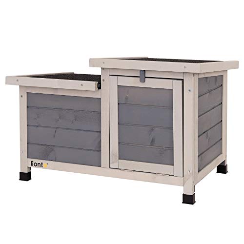 lionto Clapier en Bois avec Deux entrées, 70x43x45 cm, Toit Rabattable en Bitume Hydrofuge, Pieds en Plastique, adapté pour intérieur et extérieur, résistant à l’Hiver