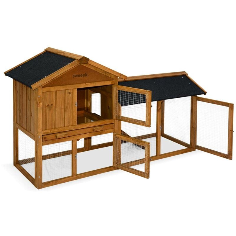 Sweeek - Clapier en bois Angora pour lapin et autres rongeurs. 4 lapins. cage à lapin avec enclos. espace intérieur et extérieur. poulailler