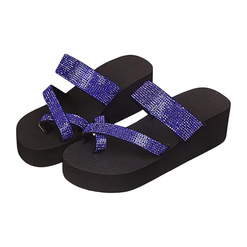 Uwdiohq Pantoufles pour Femmes Chaussures Compensées Sandales Flops Home Flip Ladies Summer Flower Beach Appartements Confort Habillé (Navy, 39) Claquette Piscine Femme Sandale Blanche Escarpins