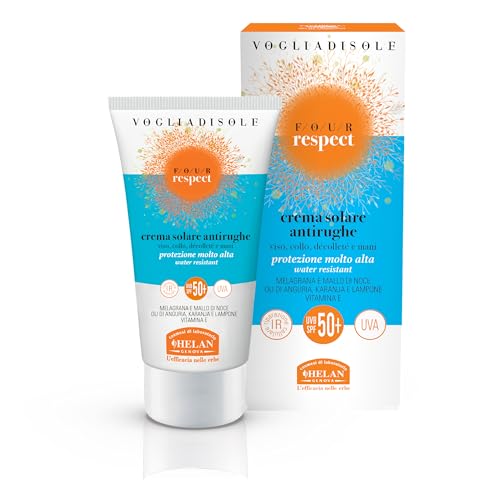 Helan, Vogliadisole Respect, Crème Solaire SPF 50+ Très Haute Protection Visage et Corps, Crème Anti-Rides à la Vitamine E, Water Resistant, Protection des Rayons Solaires UVB et UVA - 50 ml