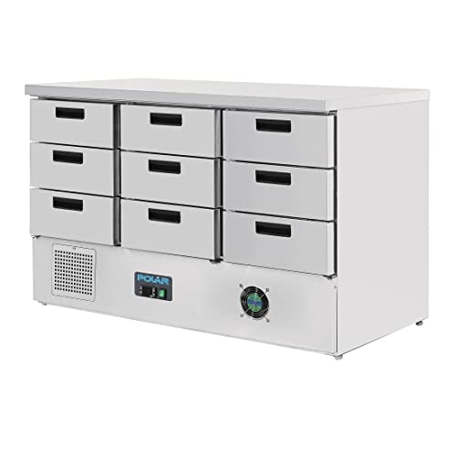 Polar Refrigeration G-Series Table refrigeree 235W 368 litres avec 9 1/1 tiroirs GN, acier inoxydable, 2°C à 5°C, 880(H) x1365(W) x700(D) mm, Classe énergétique D, R600A, FA441