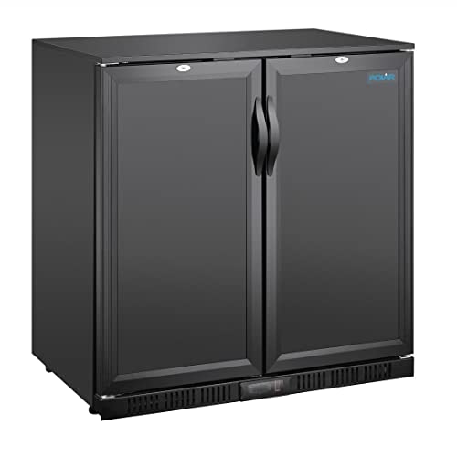 Polar Refrigeration G-series Arrière bar à double porte 230W 198 litres, noir, 2 ° C à 8 ° C, 850 (H) x 900 (L) x 520 (P) mm, portes solides verrouillables, 4 étagères, classe énergétique A, GE998