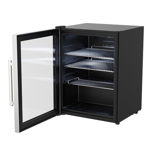cozze® Réfrigérateur 60L – Porte Vitrée & Cadre Acier Inoxydable – Frigo Compact pour Cuisine Extérieure – Silencieux 46dB – Classe Énergétique G – Design Noir