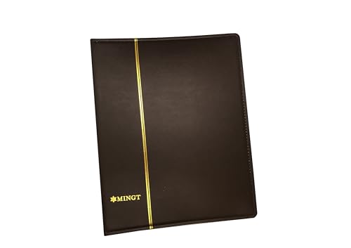 PCCB MINGT Classeur à 4 anneaux en cuir synthétique pour collection de billets, timbres, papiers, pièces de monnaie et fournitures (marron)