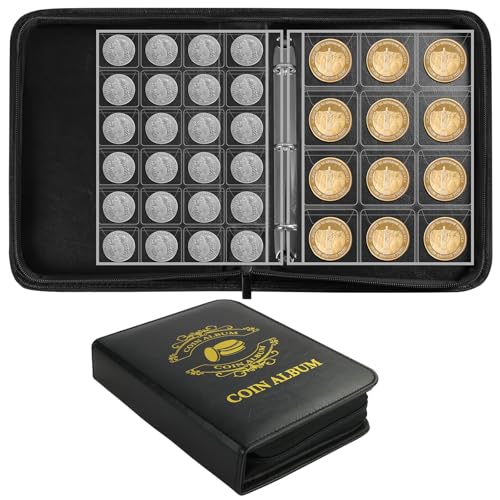 MUROAD Classeur de démarrage à 310 pochettes pour pièces de monnaie et devises, album de collection de pièces de 50 p avec fermeture éclair et poignée, pour collectionneurs, convient pour 50 pièces