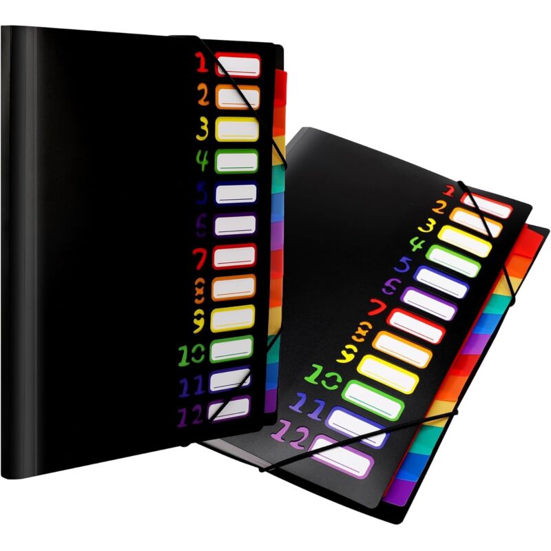 2 Pièces Pochette A4 avec 12 Compartiments Classeur Plastique Transparent Trieur Porte Documents Bureau Étanche pour École Maison Voyage