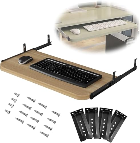 Support Coulissant pour Clavier De Souris D’Ordinateur avec Tiroir Étagère Plateau 540/600/700×270mm pour Bureau Et Table Pc sous Le Bureau Tiroir Plateau De Clavie, Maple, 54x27cm